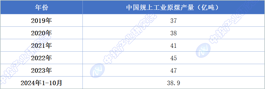 图表:2019-2024年中国规上工业原煤产量