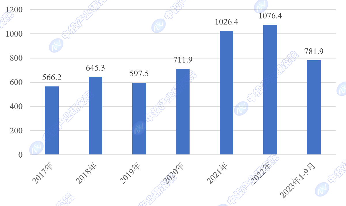 中投产业研究院发布的《2023-2027年中国半导体设备行业深度调研及投资前景预测报告》指出,2022年全球半导体设备市场规模为1076.4亿美元,创下历史新高,同比增长4.9%。2023年前三季度,全球半导体设备销售额为781.9亿美元。