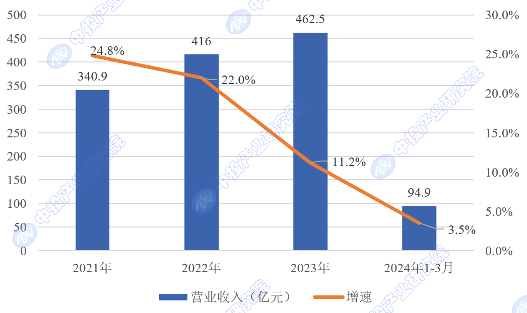 图表:2021-2024年中国航发动力股份有限公司营业收入及增速