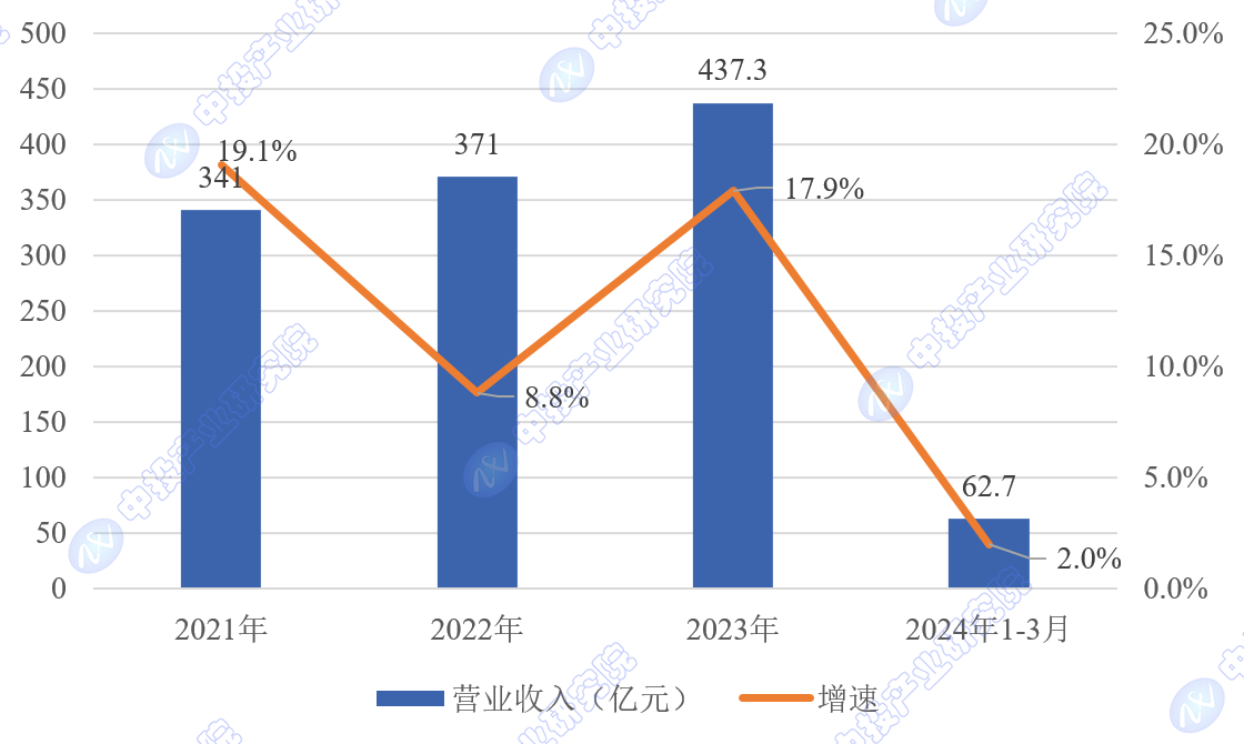 2021-2023年,中国航发动力股份有限公司营业收入实现稳步增长。2023年全年,公司实现营业收入437.34亿元,同比增长17.89%。2024年1-3月,中国航发动力股份有限公司营业收入为62.72亿元,与上年同期相比增长1.98%。