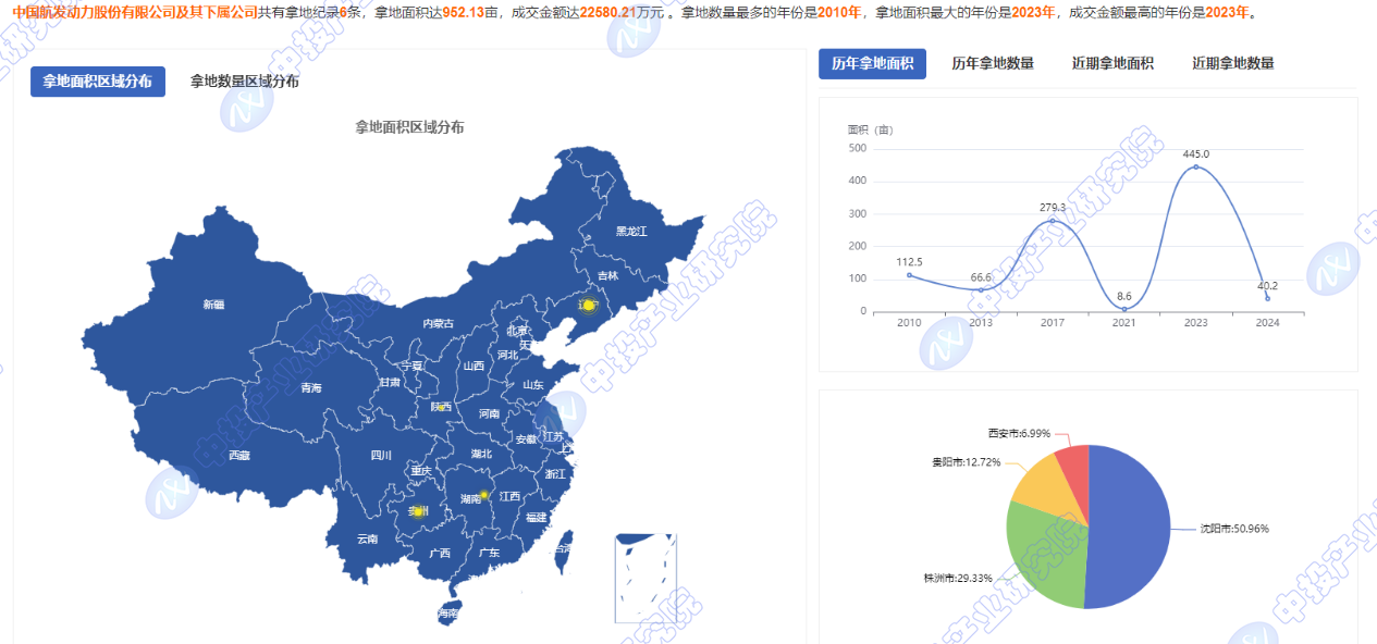 图表:截至2024年中国航发动力股份有限公司在全国拿地分布图