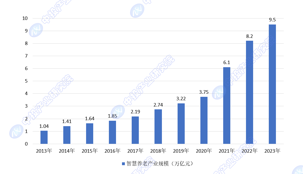 中投产业研究院发布的《2024-2028年中国智慧养老产业深度调研及投资前景预测报告》指出,中国政府高度重视应对人口老龄化挑战,出台了一系列政策以促进智慧养老产业的发展。5G、物联网、大数据、云计算和人工智能等新兴技术的发展,为智慧养老提供了技术支撑,使得远程医疗、实时健康监测和个性化养老服务成为可能。随着老年人口的增加,对便捷、高效、个性化养老服务的需求不断上升,推动了智慧养老产业的市场规模扩大。智慧养老产业不仅包括养老服务本身,还涉及医疗健康、信息通信、智能家居等多个领域,形成了一个多元化的产业链。从2012年起步到2023年的9.5万亿元,智慧养老产业规模增长迅速。预计到2024年将超过11万亿元,到2050年,智慧养老产业的市场规模将达到22万亿元,这一预测反映了该产业长期的增长趋势和对未来社会需求的响应。