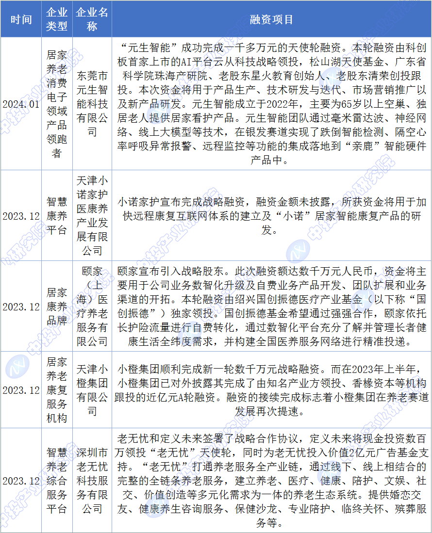 图表:2023-2024年中国智慧养老领域企业融资案例(二)