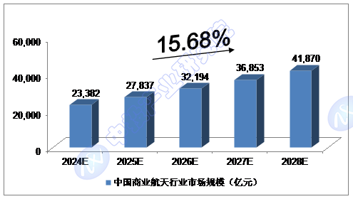 对2024-2028年中国商业航天行业市场规模预测