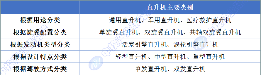 直升机是一种能够垂直升降、悬停以及以倾斜的方式飞行的飞行器。与传统的固定翼飞机不同,直升机通过旋翼的旋转产生升力,并且具有独特的垂直起降能力。直升机可以根据用途、旋翼配置、发动机类型、设计特点、驾驶方式等进行分类,具体分类情况如下: