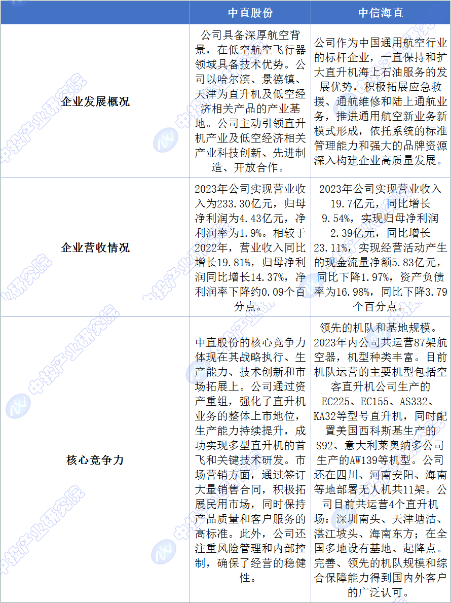 中投产业研究院发布的《2024-2028年中国低空经济深度调研及投资前景预测报告》指出,直升机领域领先企业有中直股份、中信海直等。