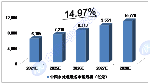 我们预计,2024年我国水处理设备市场规模将达到6,165亿元,未来五年(2024-2028)年均复合增长率约为14.97%,2028年将达到10,770亿元。