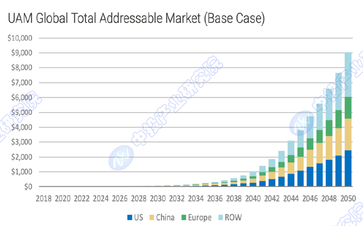 图表:全球UAM总体潜在市场规模