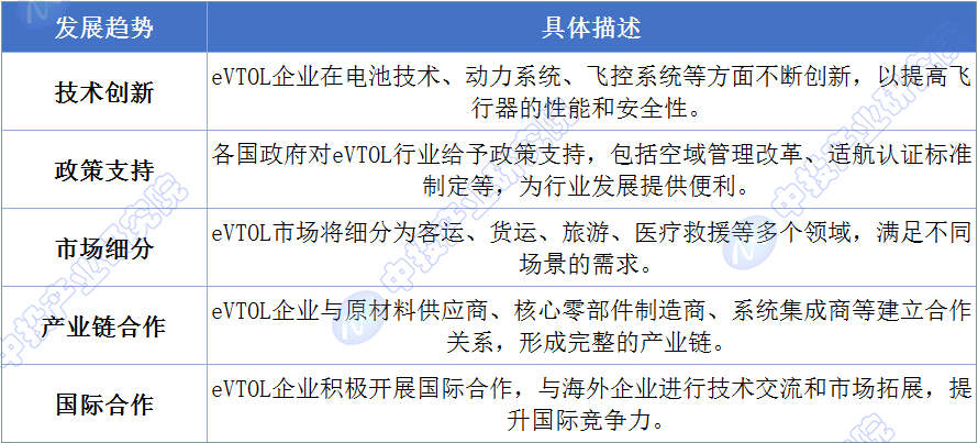 eVTOL行业的发展呈现出以下趋势: