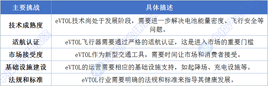 尽管eVTOL行业发展前景广阔,但也面临一些挑战: