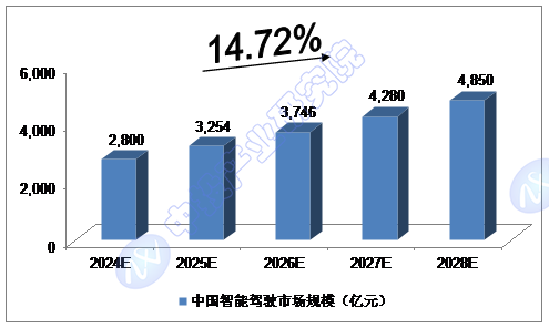 我们预计,2024年我国智能驾驶市场规模将达到2,800亿元,未来五年(2024-2028)年均复合增长率约为14.72%,2028年将达到4,850亿元。
