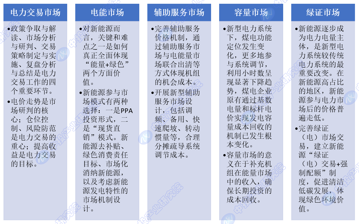 中投产业研究院发布的《2024-2028年中国新型电力系统深度调研及投资前景预测报告》指出,新型电力市场建设将面临以下五个重点: