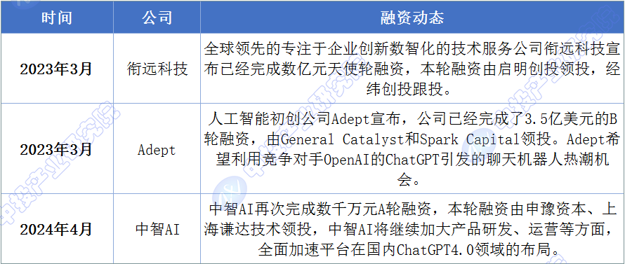 图表:2023-2024年ChatGPT行业融资动态