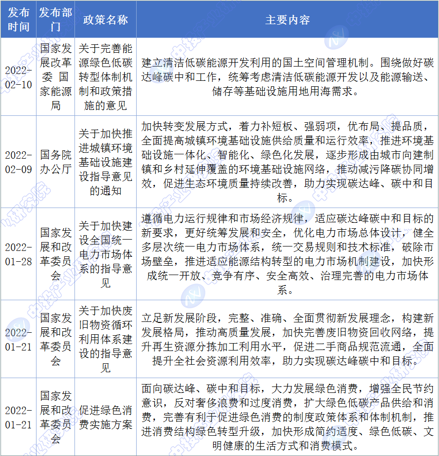 图表:国家层面低碳经济行业相关政策