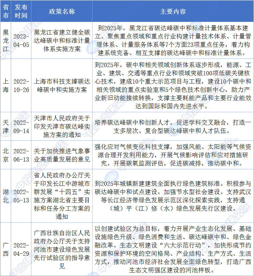 图表:部分省市低碳经济相关政策汇总