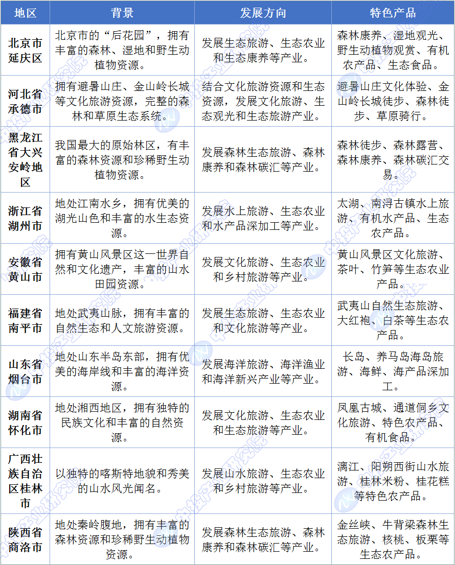 中投产业研究院对名单中各个地区的生态产品发展进行了详细分析。