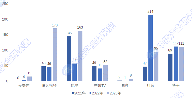 图表:2021-2023年各平台全年首播重点微短剧数量