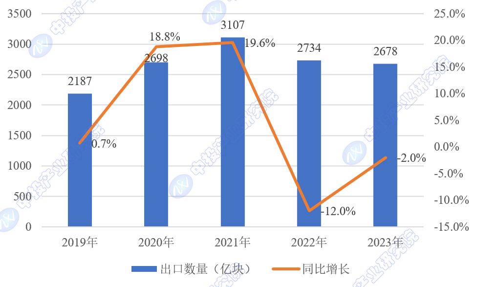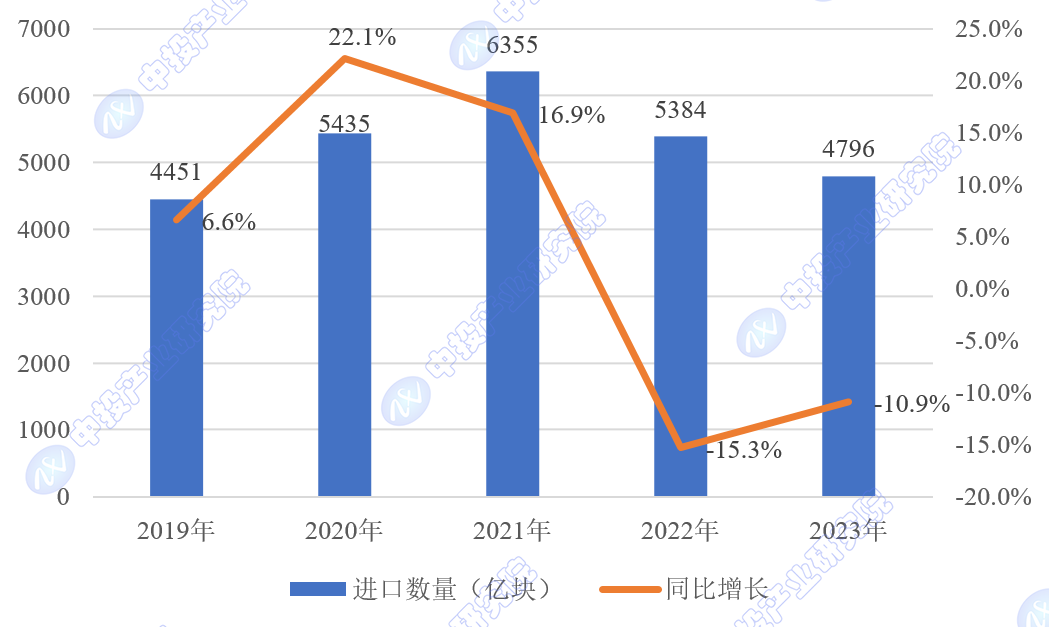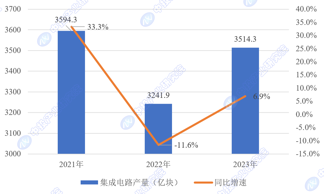 2023年,全国集成电路累计产量为3514.3亿块,同比增长6.9%。