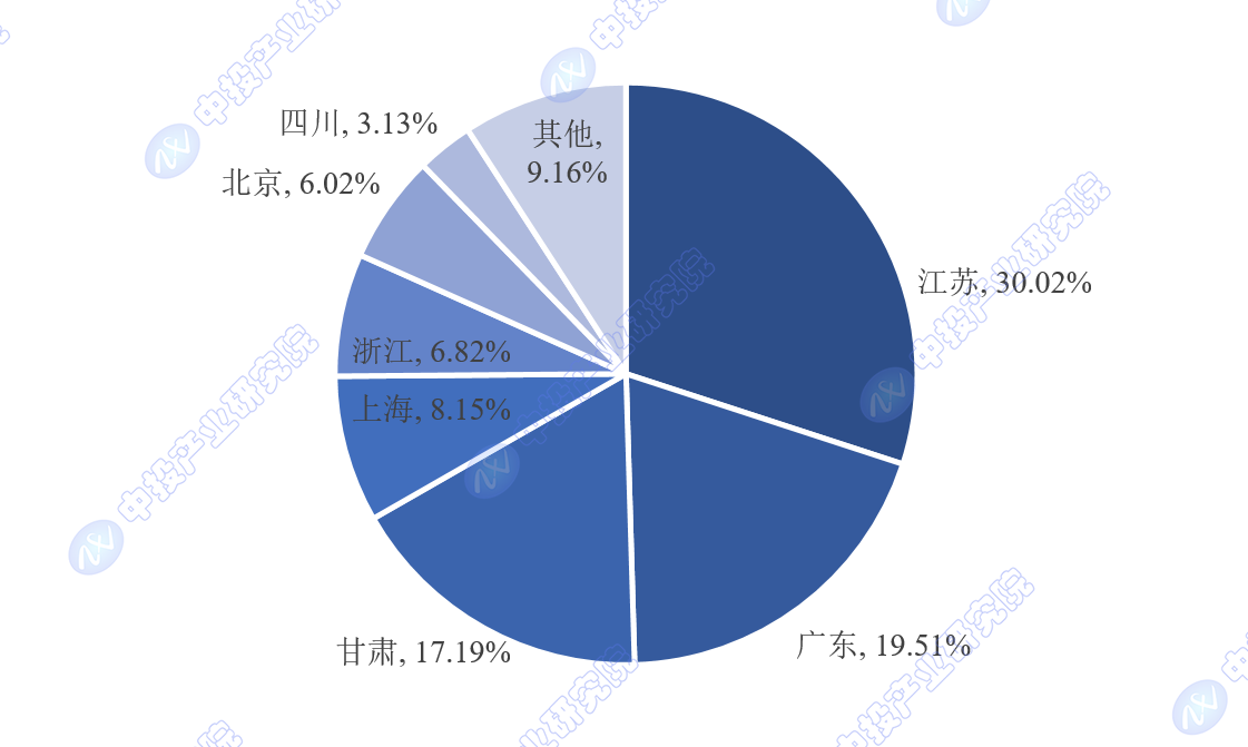 2023年1-12月,集成电路产量分布高度集中,产量前七的省份依次为江苏、广东、甘肃、上海、浙江、北京、四川,累计总产量占全国总产量的90.83%。