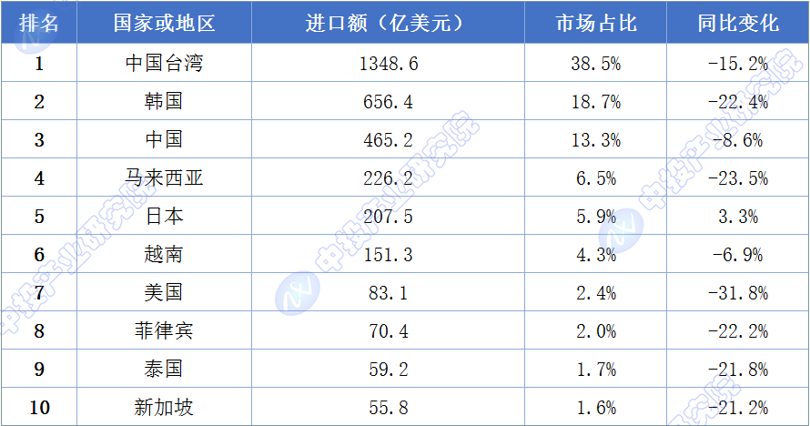 图表:2023年我国集成电路进口主要国家