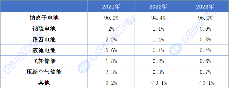图表:2021-2023年全球新型储能市场累计装机结构变化