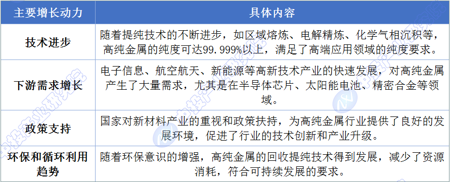高纯金属行业近年来展现出强劲的增长势头,其主要增长动力可以归纳为以下几点: