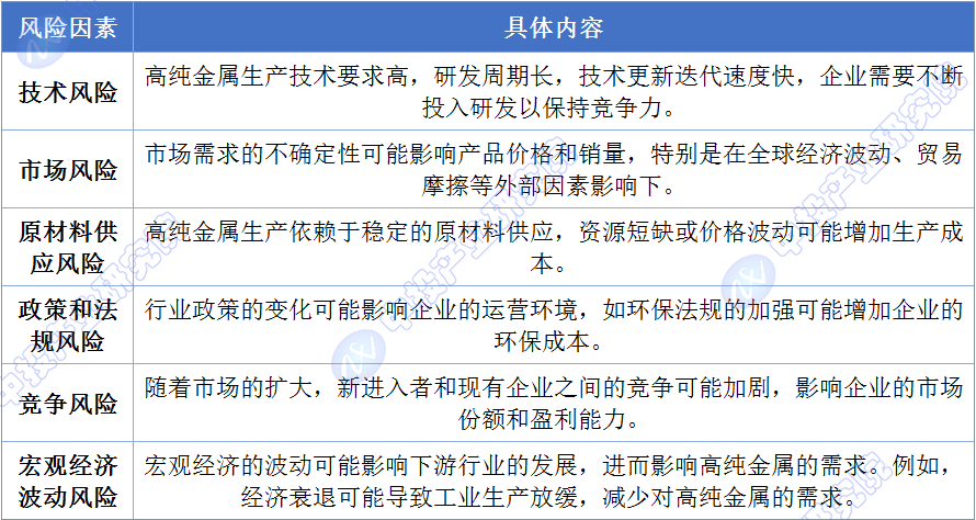 尽管高纯金属行业具有较大的投资潜力,但投资者也应关注以下潜在风险: