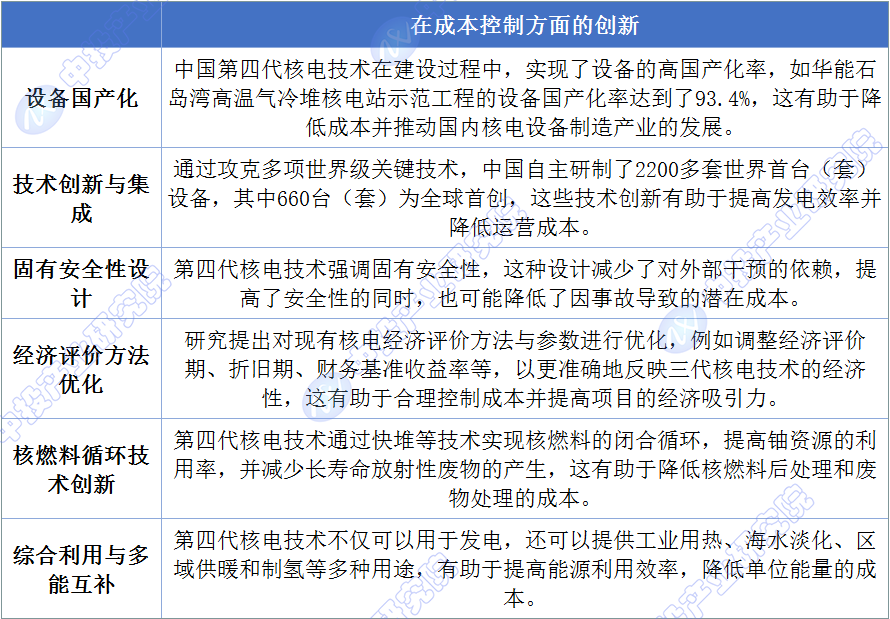 图表:中国第四代核电技术在成本控制方面的创新