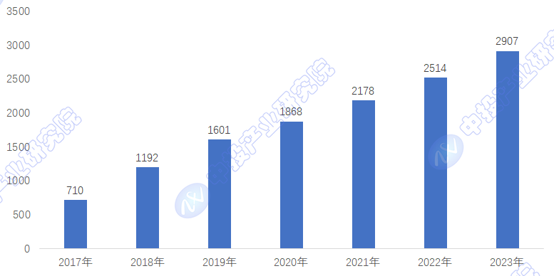 中投产业研究院发布的《2024-2028年中国环卫行业产业链深度调研及投资前景预测报告》指出,近年来我国环卫服务市场规模不断增长,2017至2023年,我国环卫服务市场规模由710亿元迅速增至2907亿元。