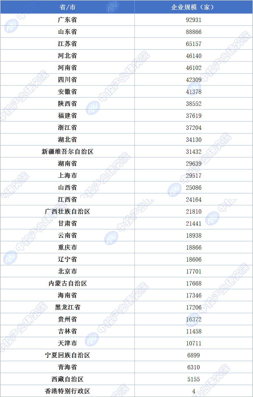 截至2024年7月18日,经营范围内包含“环卫”的存续/在业企业共计93.67家。其中广东省环卫相关企业注册规模最多,达到92931家,其他排名前三的省市为山东省和江苏省,分别为88866家和65157家。