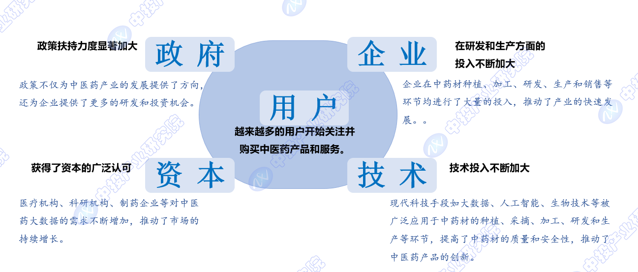综上所述,政策、资本、技术、用户、企业等多方面的因素共同推动了我国中医药产业的快速发展。未来,随着科技的不断进步和人们健康意识的提高,中医药产业将迎来更加广阔的发展前景。
