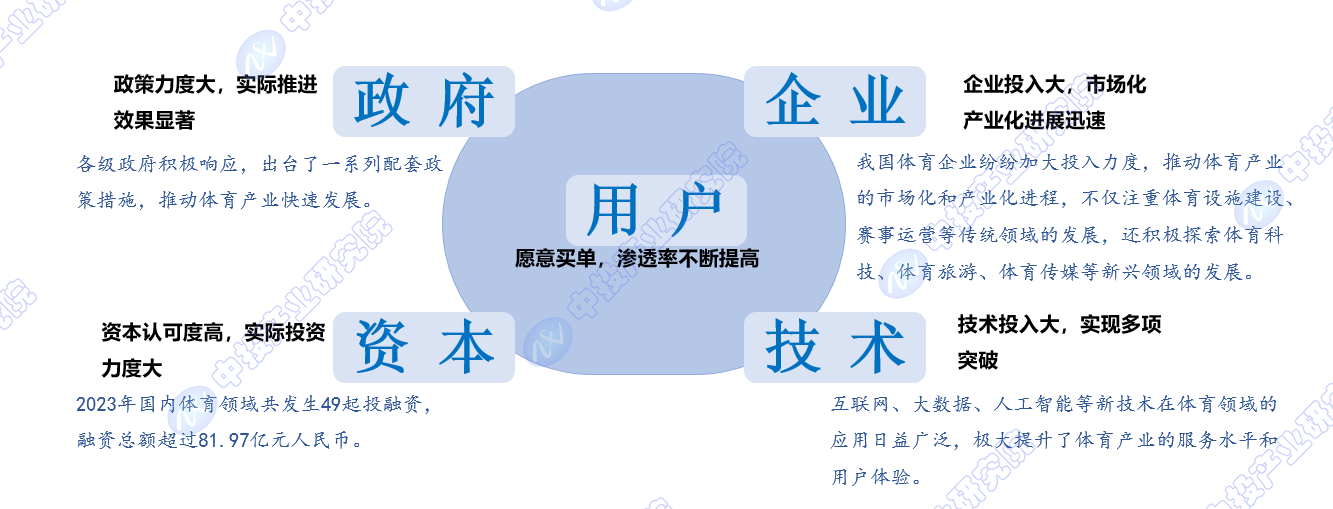 综上所述,政策、资本、技术、用户和企业五个方面的共同推动是我国体育产业发展的关键驱动因素。未来,随着这些因素的持续发挥作用和不断优化完善,相信我国体育产业将迎来更加广阔的发展空间和更加美好的发展前景。