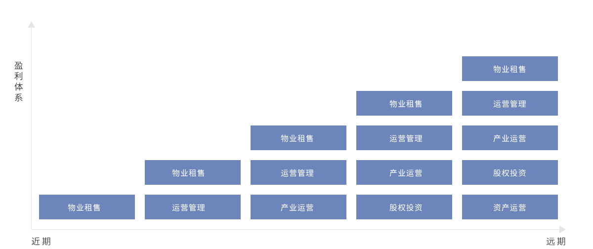 通过物业租售、管理收益、产业运营、股权投资和资产运营等五方面,结合企业发展战略制定