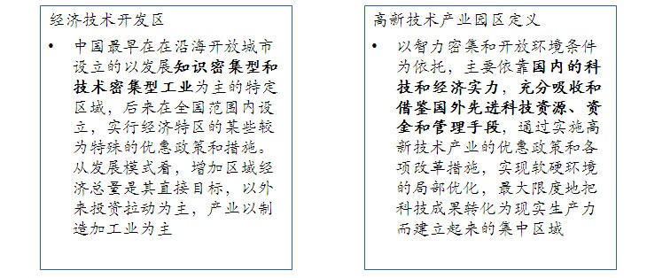 ● 两者都有发展知识密集型产业的特征,在涉及到具体的产业上,国家并没有做太具体的界定,所以导致这两种开发区名字上有差异,但是实际产业上会有重叠的地方。