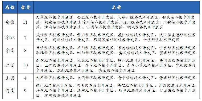 中部六省国家级经济开发区