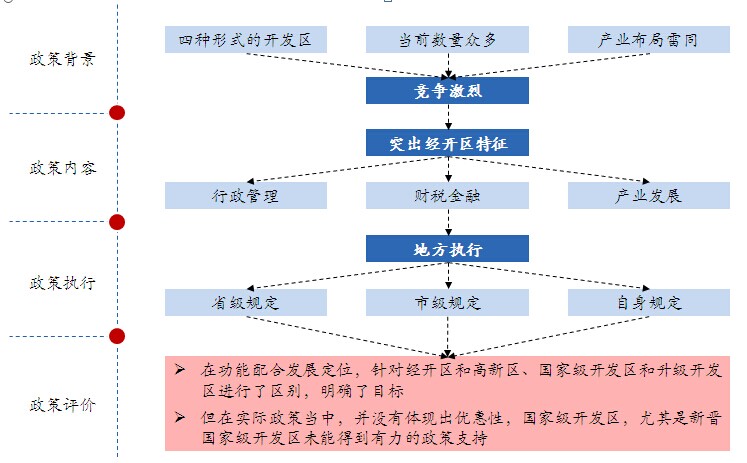 ● 但在实际上,中央政府并没有给予相对应的政策来支持转型。总体而言,国家级经开区所拥有的政策优势相当有限。