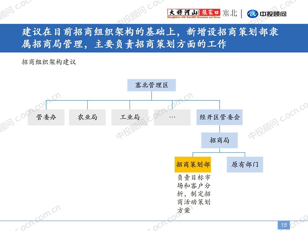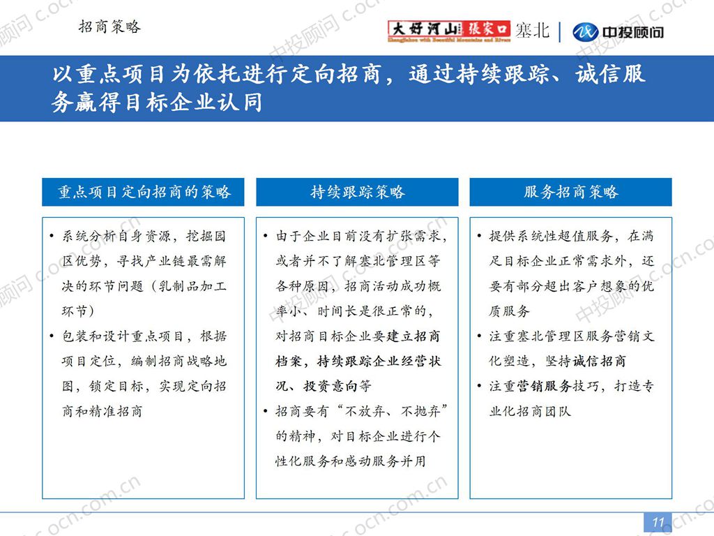 服务内容:详细梳理和分析塞北管理区自身特点和发展产业的各项比较优势,选择适合发展的产业、规划发展路径、设计重点项目,研究国内目标招商企业,制定针对性的招商策略。
