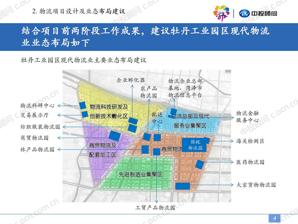 服务内容:项目组对牡丹商贸物流及配套产业园在菏泽市、牡丹区的定位与产业发展现状进行了系统剖析,并深入分析了菏泽市及周边区域产业发展现状及未来趋势,进而为牡丹商贸物流及配套产业园具体规划了未来的区域功能、战略定位,制定了以现代商贸、现代物流等为重点的现代服务业产业体系,提出了中国牡丹生态智慧城的定位,打造国家级智慧城市示范基地、鲁苏豫皖邻边商贸物流中心、鲁西南服务创新高地、全国县域经济科学发展示范区和菏泽市城市副中心,争创菏泽市经济转型和产业升级的新引擎,得到了牡丹区领导及专家们的一致认可。