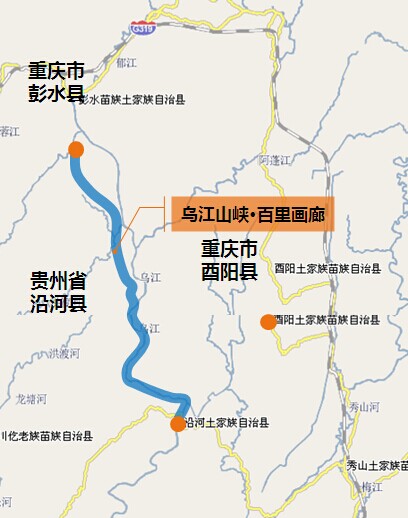 项目研究范围为贵州沿河县城至重庆彭水大唐电站的乌江干流段,长约100公里,集雄、奇、险、峻、幽为一体的山水自然山峡。