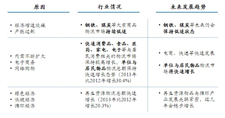 ● 与生活相关消费品的物流将继续快速发展,而钢铁煤炭等产品的物流不会有起色。