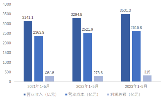 2023年1-5月,全国仪器仪表制造业营业收入3501.3亿元,同比增长7.8%;营业成本2616.8亿元,同比增长5.9%;利润总额315亿元,同比增长14.5%。