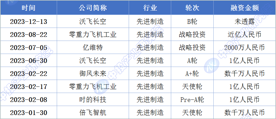 图表:2023年中国eVTOL行业投融资事件情况