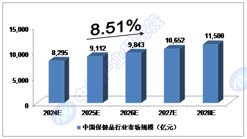 我们预计,2024年我国保健品行业市场规模将达到8,295亿元,未来五年(2024-2028)年均复合增长率约为8.51%,2028年将达到11,500亿元。