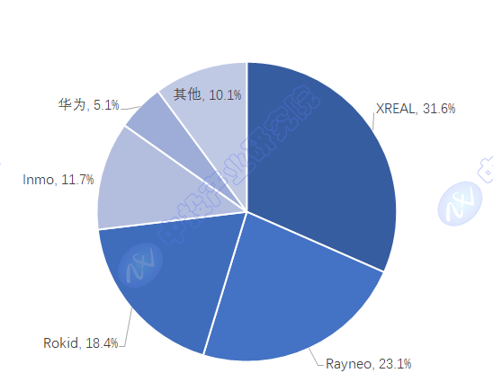 目前国内AR头部厂商以创业公司为主,2023年排名前四的厂商均为成立时间较短的初创企业,分别为XREAL、Rayneo、Rokid、Inmo,占比分别为31.6%、23.1%、18.4%、11.7%。2023年国内主流品牌也开始推出了搭载高通处理器的一体式AR眼镜,开始占据市场份额,华为排名第五,市场份额达5.1%。