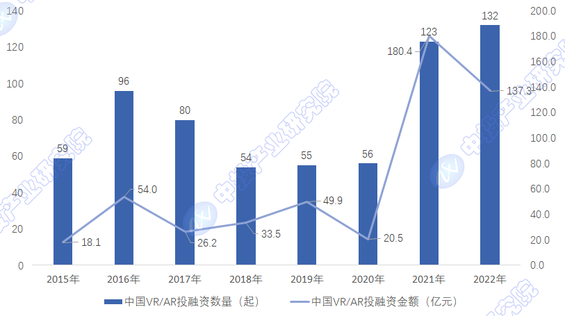 受经济大环境和元宇宙降温的影响,2023年中国VR/AR投融资有所下滑,融资总额约为61亿元,同比下降55.6%,融资事件共137起,同比下降约30.3%。