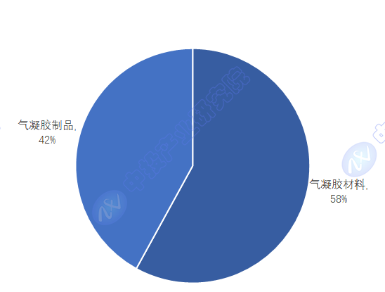 我国气凝胶产品主要分为气凝胶材料和气凝胶制品两部分,其中气凝胶材料相较于制品生产难度小,占据更多份额。从气凝胶的产品市场占比来看,气凝胶材料占比达58%,气凝胶制品占比为42%。