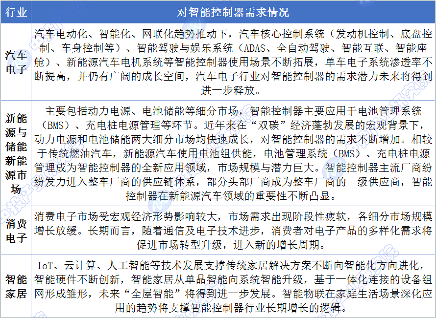智能控制器的主要分类包括电子型智能控制器、标准型智能控制器和通讯型智能控制器。其广泛应用于汽车电子、新半岛网页版下载App 、消费电子、智能家居等行业当中。
