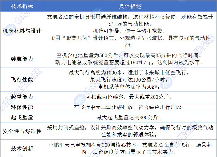 图表:小鹏汇天旅航者X2技术特点和性能参数