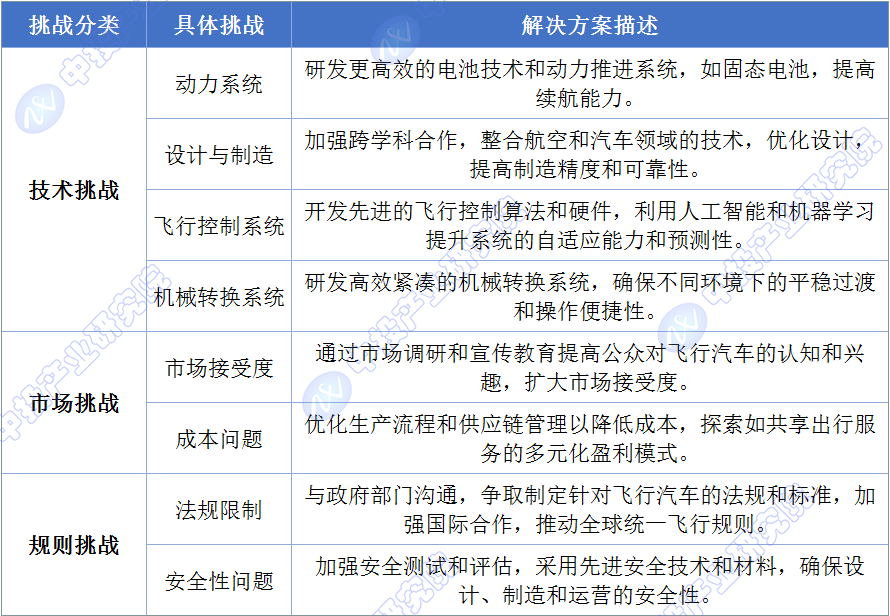 图表:中国飞行汽车行业面临的主要挑战和解决方案