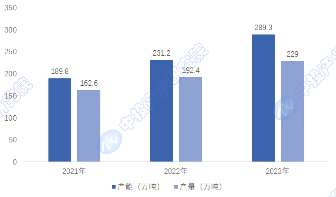 图表:2021-2023年中国聚硅氧烷产能及产量变化分析